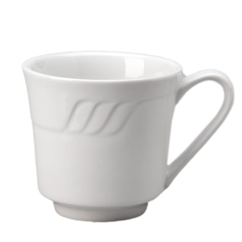 This undecorated Kendall cup has an elegant embossment, and it's perfect for that first cup of coffee.
