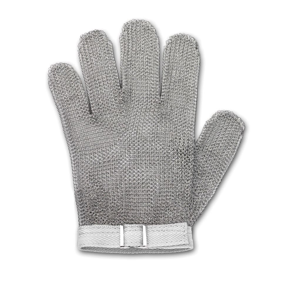 This Victorinox Saf-T-Gard® Cut-Resistant Glove provides superior cut and puncture protection while slicing, dicing, or chopping foods in the kitchen. It comes in an X-Large size, and is reversible to fit either the right or left hand. The taper-fit design conforms to the hand, resulting in less fatigue and greater productivity. This glove is made from individually welded stainless steel rings, and is finished with an adjustable orange fastener for the perfect fit.