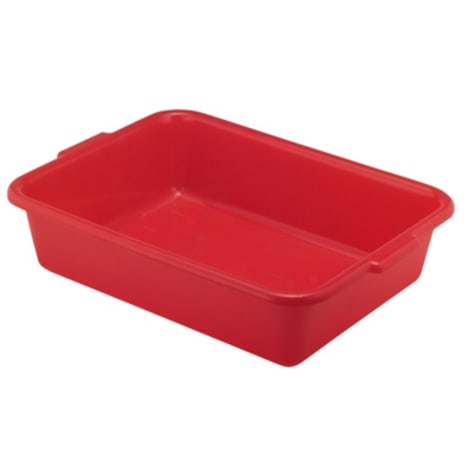 This Traex® bus box is 5" deep and features reinforced ribs on the top and bottom for added strength. It has reinforced handles and is made of high density polyethylene. This red bus box also features stacking lugs to prevent sticking together and is perfect for use in restaurants, cafeterias or healthcare facilities.