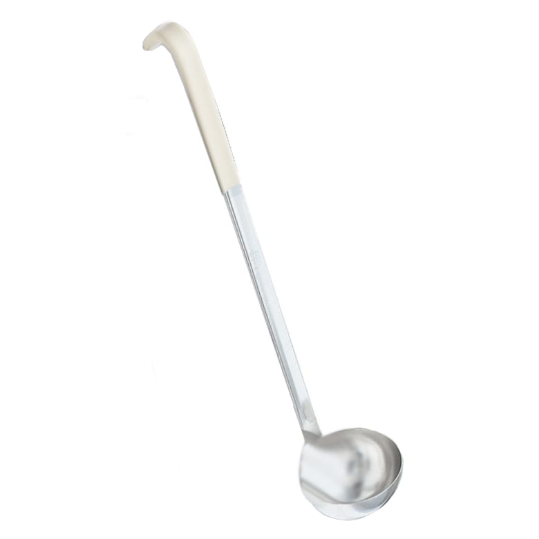 Avoid cross contamination and minimize food costs with this color coded, accurate, stainless steel, 3 ounce ivory ladle.
