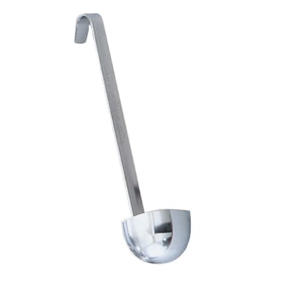 This 1 ounce stainless steel ladle has an attractive bright finish and is tough and durable for a great fit with any busy kitchen.