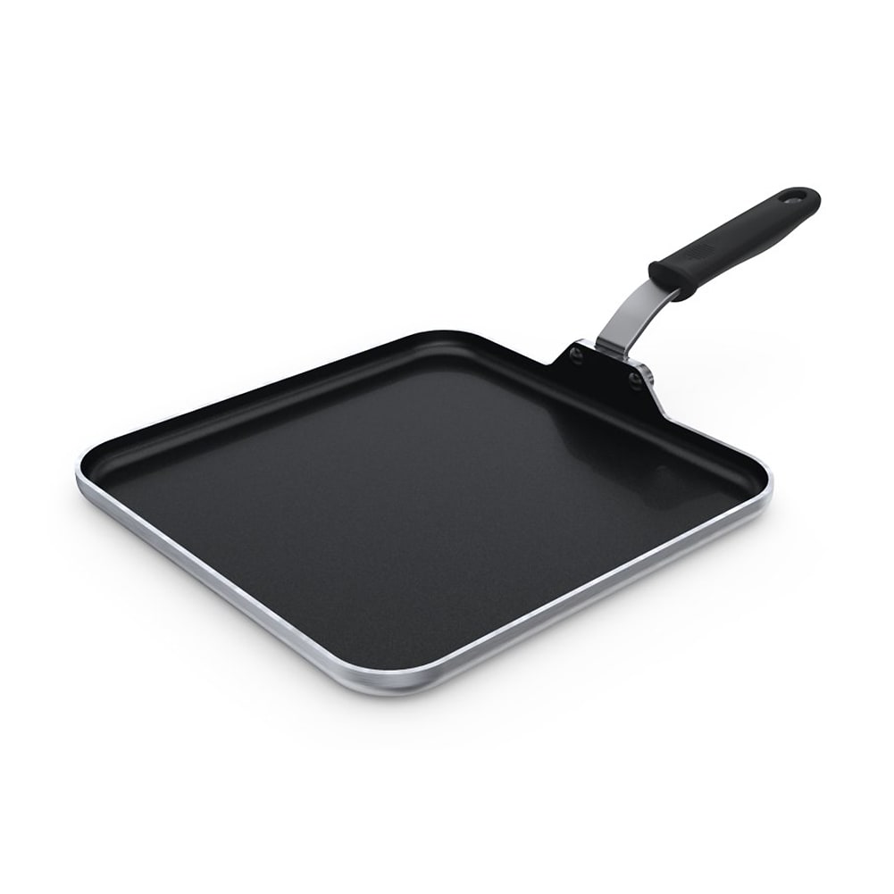 This Tribute® 12" square stovetop griddle from Vollrath® features Tri‐Ply construction that maintains shape under constant commercial use and the aluminum core distributes heat evenly and without hotspots.