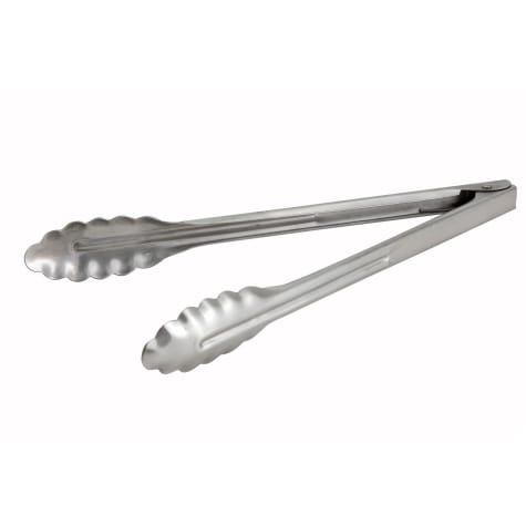 This Winco® Utility Tong is perfect for a variety of jobs in the kitchen. It comes in a 12" size, and has a coiled spring design.