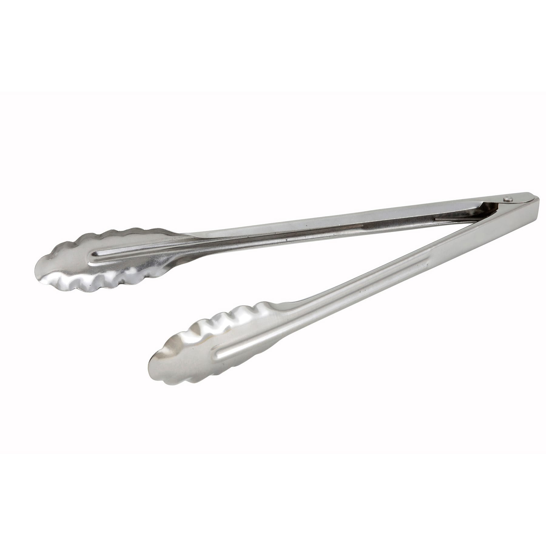 These medium stainless steel scallop tongs are ideal for your fast paced, food preparation and cooking environment. They provide a sure grip to help avoid food dropping onto the table.