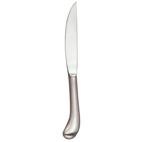 This hollow handle pistol grip steak knife features an all‐stainless steel construction with a fluted blade. These knives are commercial dishwasher safe.