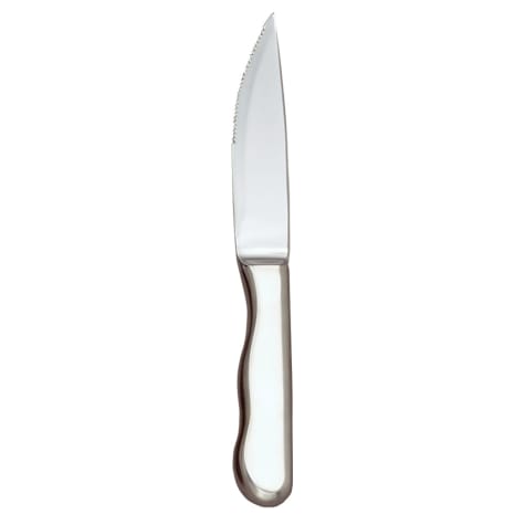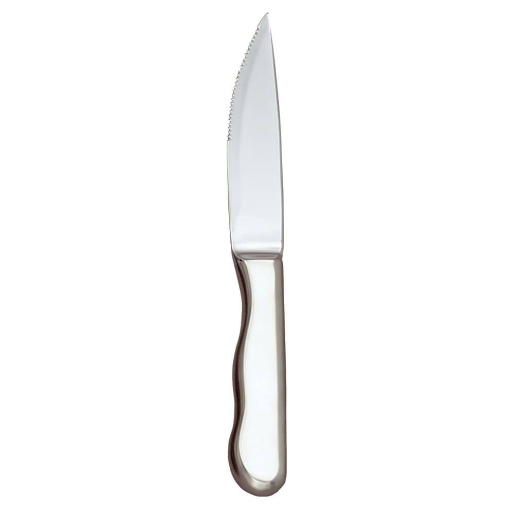This all stainless steel steak knife has a hollow handle, a pointed tip and an attractive satin finish.