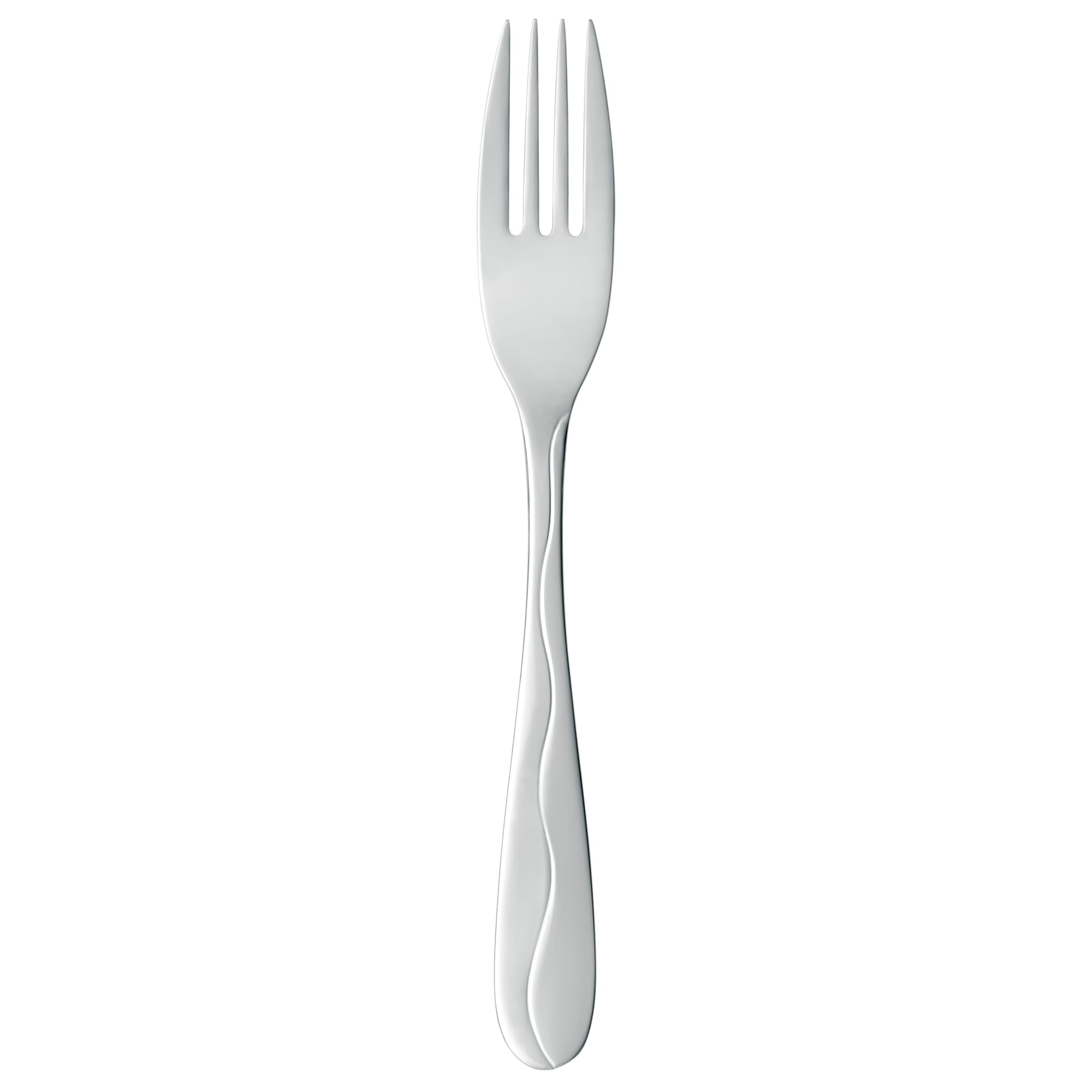 This 7" dessert and utility fork features the central wavy groove of the Cantina pattern in durable stainless steel. The mirror finish makes this flatware shine.