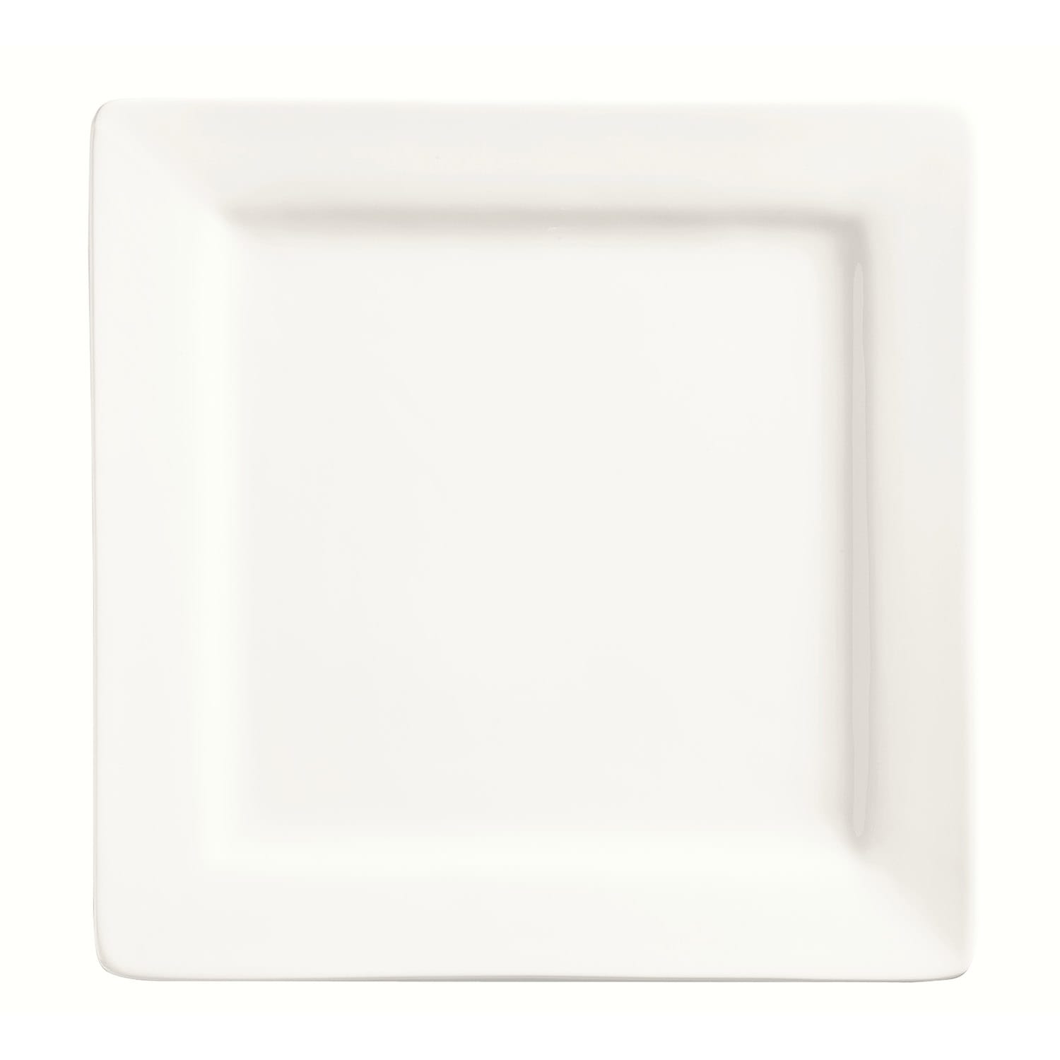 This 7‐1/4" square plate features the clean, angular lines and ultra bright white porcelain body of the Slate collection.