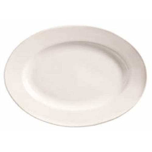 This wide rim oval platter features the pure, bright white body and simple design of the Porcelana line. Durable and beautiful, this dinnerware is a great choice.