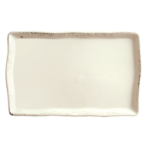 This World® Tableware Farmhouse tray can be used to server platters of food or as an individual plate. This plate has a down on the farm style with a light brown etching on the edge that adds a rustic look.